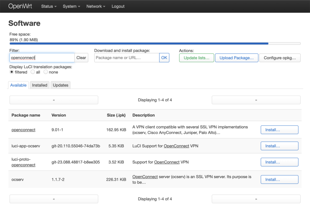 - Найдите и установите компонент OpenConnect VPN‑клиент